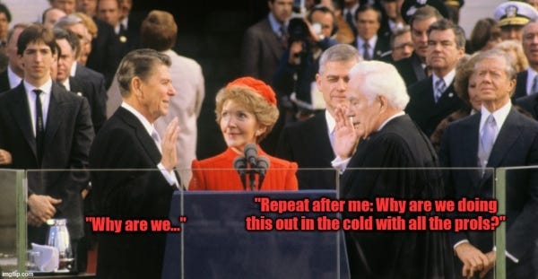 But the bottom line is that the inauguration of Trump 2.0 owes so much to two prior inaugurations, the ones in 1981 and in 1993, and how that all coalesced after the inauguration of 2001, creating the uniparty, and more specifically after 9/11/01. All three of those elections had aspects of deep events - the Bush/Casey October Surprise taking out a sitting president, various manipulations by people like Alan Greenspan and Rahm Emanuel taking out another sitting president, and then the Monica Jewinsky impeachment and the SCOTUS Real Steal elevating a loser to winner in Florida.