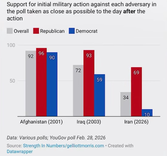 But they spent a paragraph here making the case for why one cannot blame that war on Jewish influence, which is that polling showed a smaller percentage of Jews than goys supported the war when it started. What they do not address is the split between Republicans and Democrats; here is one indicator of that recently related to the latest neocon debacle: