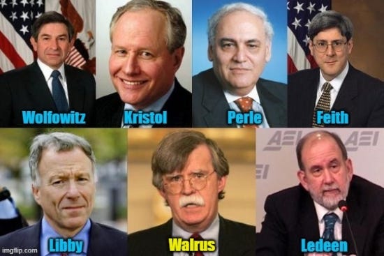 At the end of that section of a couple pages the matter of the neocons finally comes up in the last paragraph: