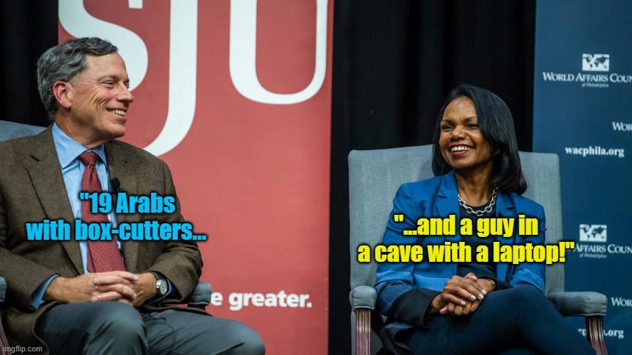 I would hope people know that the principal neocons in the Reagan administration pretty much all got gigs in Bush II. But I want to first focus on two people here regarding one of Unz’ claims, about his cabinet, and they are Philip Zelikow and Condoleezza Rice.