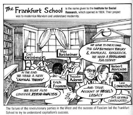 The guru of the New Left, its intellectual darling, unquestionably was Herbert Marcuse of the Frankfurt School; he is the one of six leading figures in this cartoon who has nothing to say, all six having been Jews.