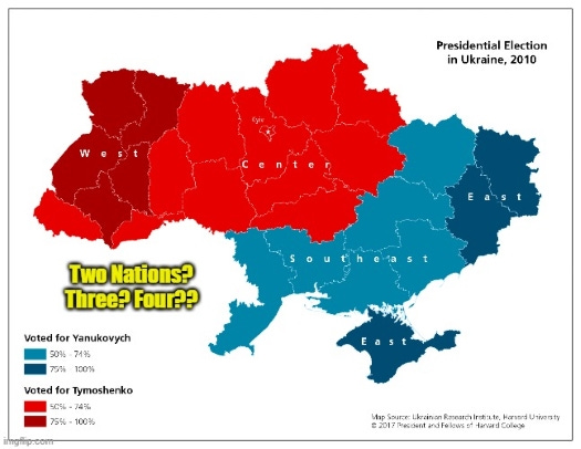He gets into the change in Ukrainian politics as a result in losing the eastern oblasts, and he’s absolutely right to raise that issue. The political balance of the country that ended up dividing the country shifts significantly with the removal of the five oblasts (including Crimea). One of the elections he speaks of was 2010 when Yanukovych defeated Tymoshenko, and you can see who would have won easily without those five oblasts: